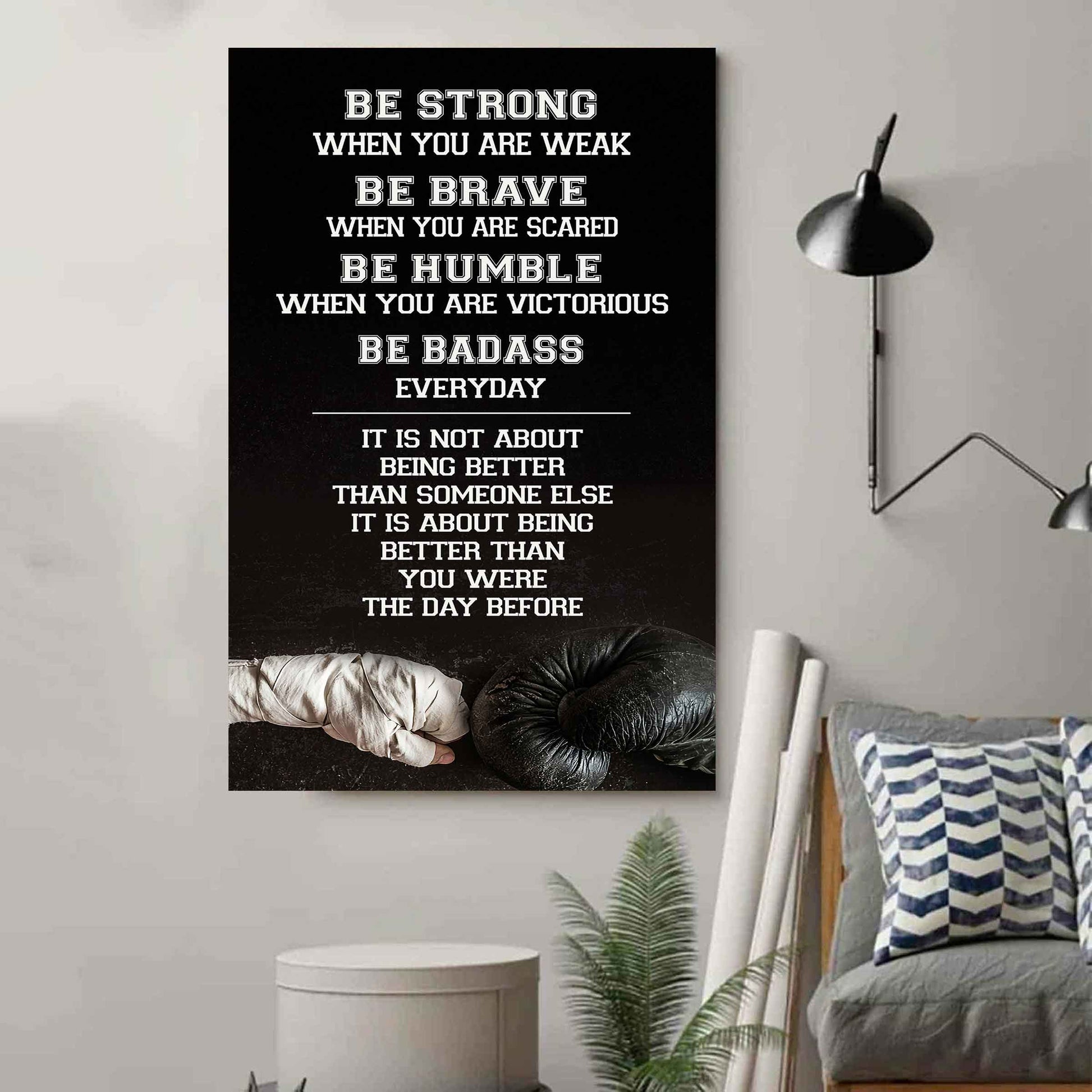 I got this for my 13 year old grandson. Hung it in his bedroom over his study desk. A daily reminder to work hard!