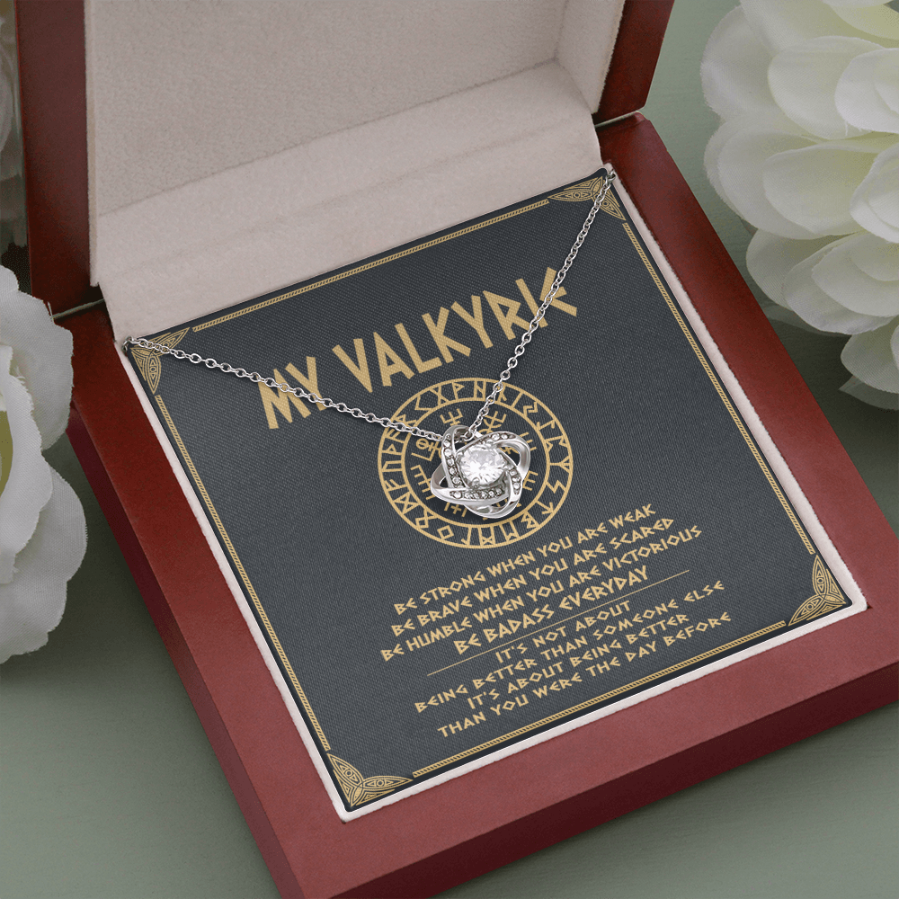 Viking Love knot necklace, gifts from dad mom to daughter, Be strong be brave be humble, It is not about better than someone else, It is about being better than you were the day before