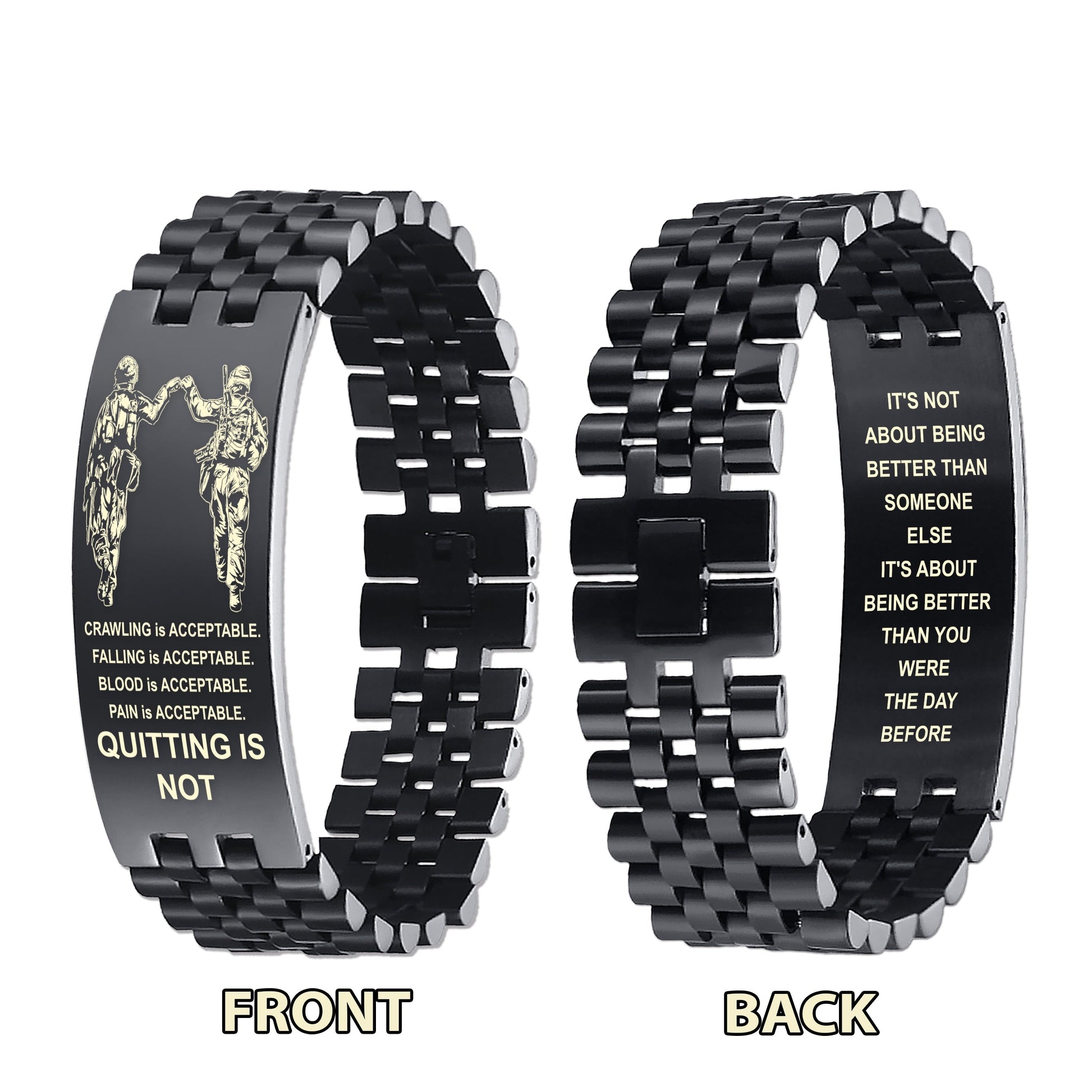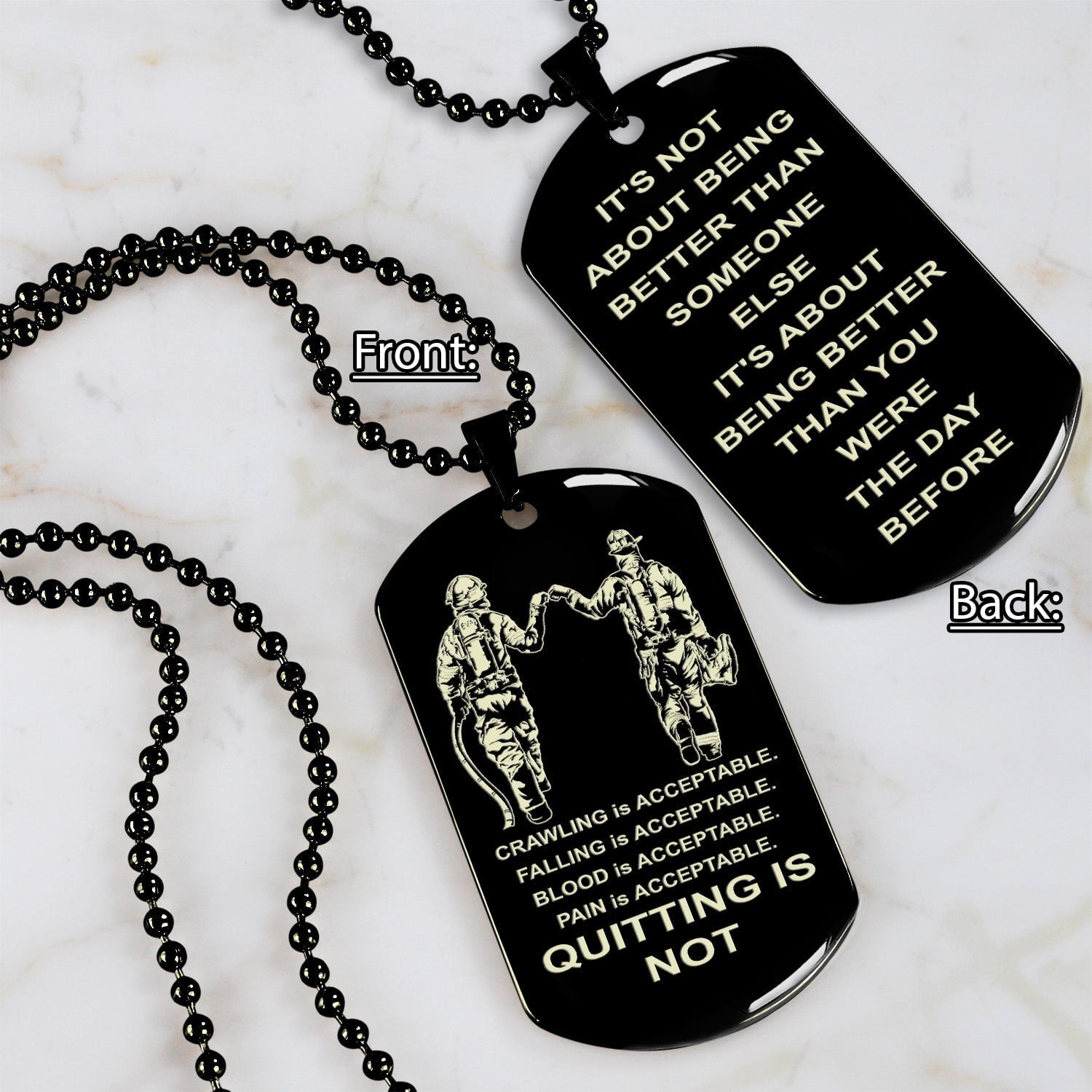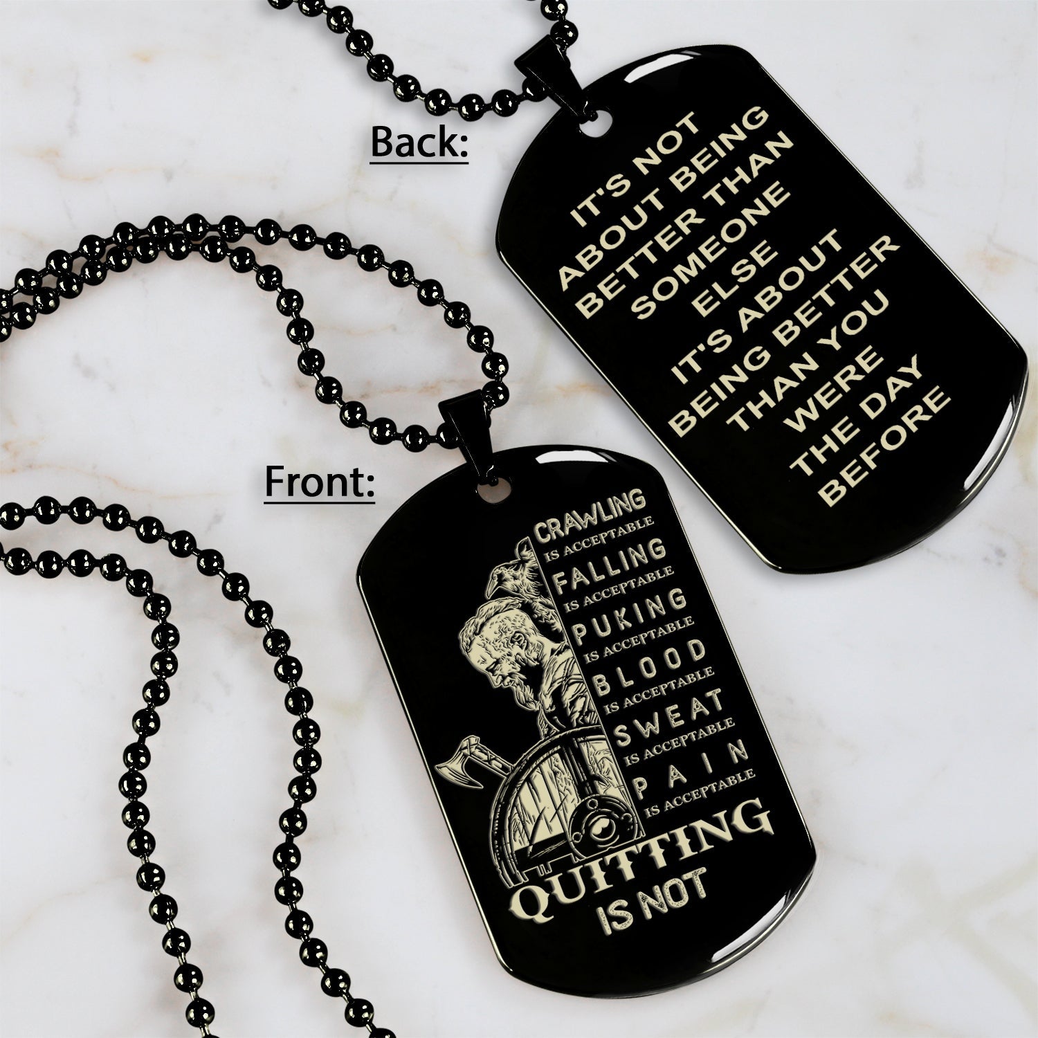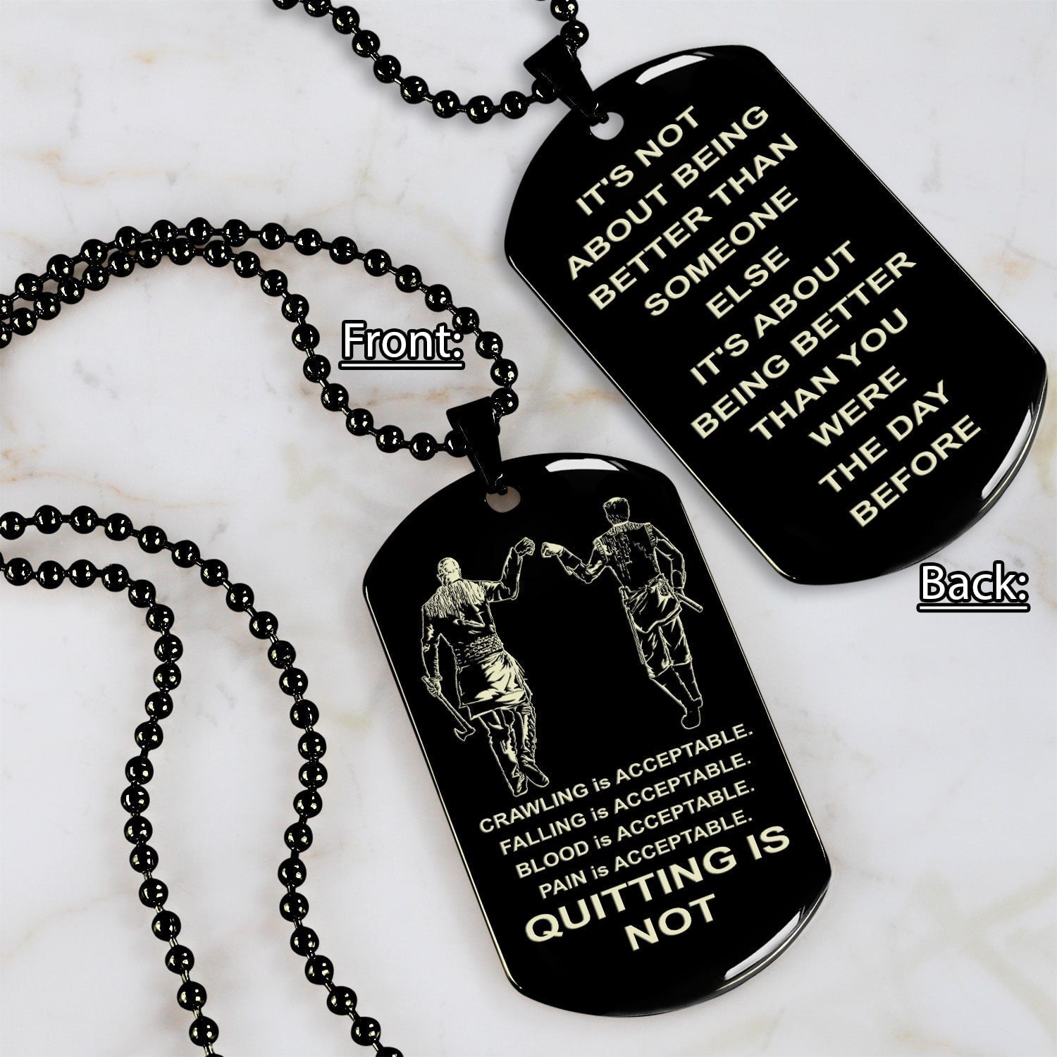 DRB-QUITING IS NOT- It is not about better than someone else, It is about being better than you were the day before, dog tag double sided